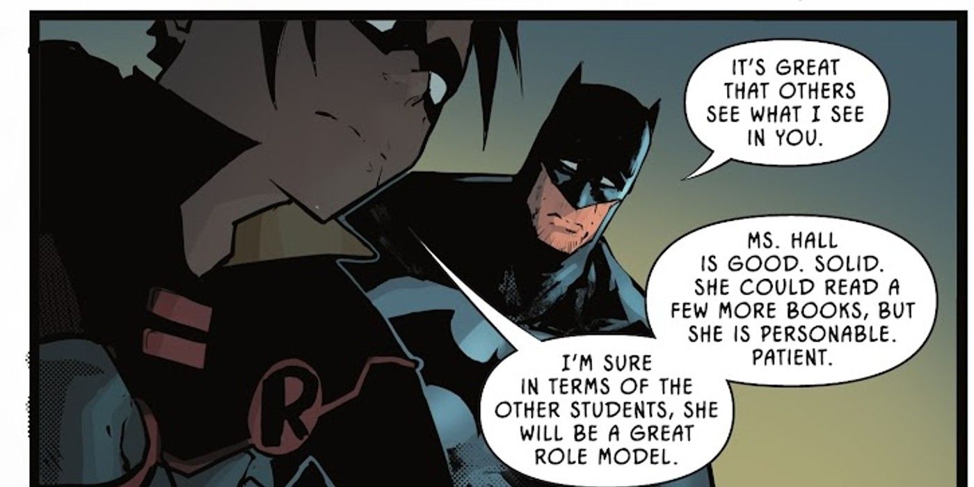 Al mantener la narrativa de “Batman es un mal padre”, los críticos han acusado al personaje de ser de todo, desde negligente hasta obsesivo. Pero fuera de “Bat-debers”, demuestra ser todo lo contrario, al menos para Damian. Quizás Batman haya sido retratado como un mal padre durante tanto tiempo debido a estos llamados Bat-deberes. La mayor parte del tiempo, solo patrulla con sus hijos manteniendo una conducta estoica, por lo que no hay mucho espacio para la comodidad y la amabilidad. Ahora, mientras Damian explora la escuela secundaria por primera vez, hombre murciélago puede soportar tareas más mundanas, como tareas escolares y deportes, como nunca antes.