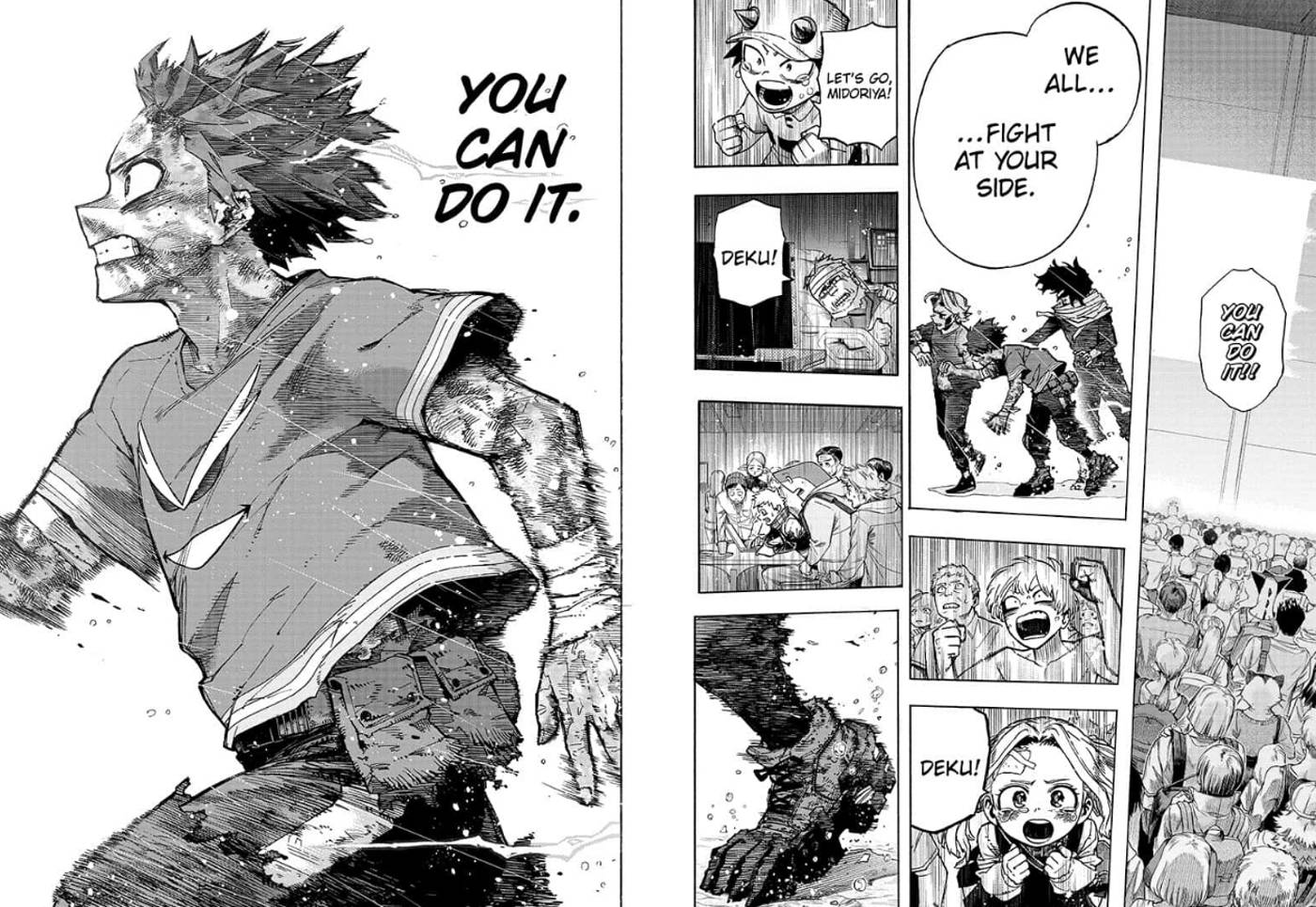 Todoroki comenzó a usar su fuego y ayudó a su familia, mientras que Kota y Eri quieren convertirse en héroes como Deku. No cuentan con que Midoriya esté siempre ahí para salvarlos. y se han vuelto proactivos para fortalecerse. Cuando su batalla contra Shigaraki y All For One se transmitió en todo el mundo, la naturaleza inspiradora de Deku comenzó a extenderse a un ritmo rápido. Muchos héroes que se mostraban reacios a unirse a la lucha se convirtieron en combatientes activos, como se ve en el capítulo 420 del manga. Deku se ha convertido en un nuevo símbolo, uno que impulsará la cooperación entre héroes, creando un futuro mejor.