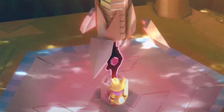 Es necesario derrotar a la máquina de asedio para obtener la gema roja en Sayo. La mejor estrategia para derrotar al motor de asedio es permanecer detrás del jefe tanto como sea posible y apuntar a su orbe brillante para causar el mayor daño. Tener actualizaciones de estadísticas como salud, ataque y resistencia hará que la pelea sea mucho más fácil. Si los jugadores tienen dificultades para ganar la batalla, pueden buscar más elementos de actualización o activar el modo de invencibilidad desde el menú de pausa. Una vez que el motor de asedio está apagado, se puede recolectar una vara y usarla en la plataforma en la parte inferior de las escaleras. La gema roja será revelada y luego podrá ser entregada al Templo Sellado en Sayo.