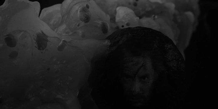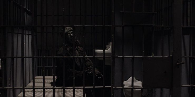 La cámara se desplaza desde su celda a otra, donde un hombre de aspecto siniestro cubierto de lo que parece ser carbón u hollín mira fijamente a la cámara, impactando y desafiando al espectador a que le devuelva la mirada. Después de un latido, el leñador se disipa, con solo su cabeza flotando mientras continúa mirando. La escena es surrealista y un poco cuidada, a pesar de que el uso del sonido es mínimo.