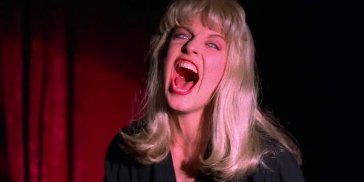Ella grita asesinato sangriento todo el tiempo mientras sus ojos están blanqueados. Si bien puede que no sea necesariamente la propia Laura, está familiarizada con los sentimientos, la apariencia y el legado de Laura en la forma en que murió, y se desquitó con Cooper y la audiencia en un momento de horror estridente y legendario.