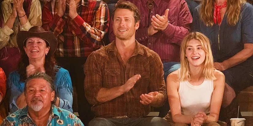 Los padres de Glen Powell están sentados detrás de Tyler y Kate en las gradas del rodeo en