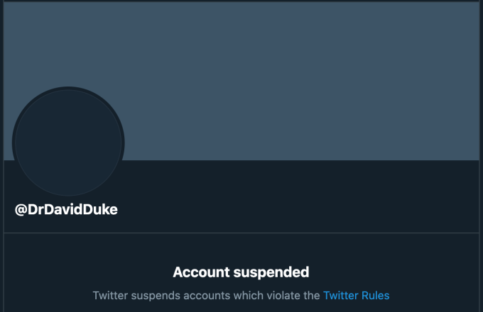 Un portavoz de Twitter confirmó a TechCrunch que la prohibición de Duke es permanente y nos envió esta breve declaración por correo electrónico: