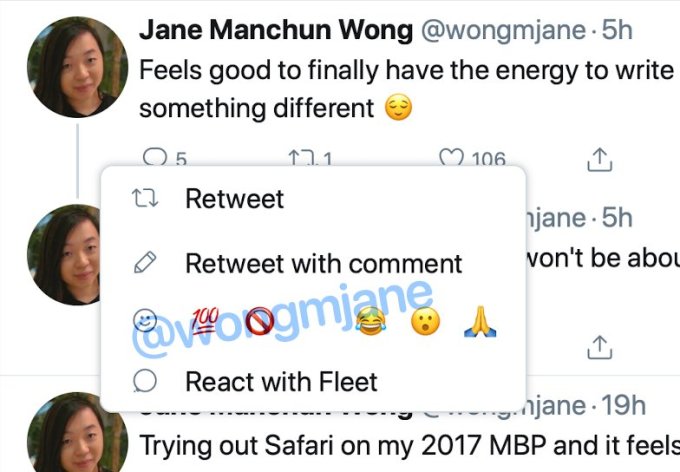En la prueba, Twitter también incluye las flotas como reacción, además de estas respuestas instantáneas, junto con Retweets y Retweets existentes con comentarios. (Las flotas son la versión de Twitter de Historias y hasta ahora solo están en vivo en Brasil, Italia y más recientemente, India).