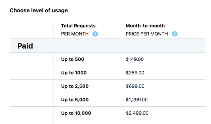 Si un desarrollador prueba que tiene un caso de uso de consumidor legítimo, como ejecutar un cliente de Twitter de terceros o hacer una investigación, se les otorgará acceso gratuito a la API al mismo ritmo que tienen hoy. Si utilizan principalmente los datos para servir a los clientes comerciales como una herramienta B2B, como para el servicio al cliente o el monitoreo de redes sociales, tendrán que pagar para entrar en un acuerdo de licencia comercial con Twitter con un precio personalizado basado en el uso. Twitter se negó incluso a especificar el rango en el que se encuentran esos precios, lo que no se ganará ninguna confianza adicional.