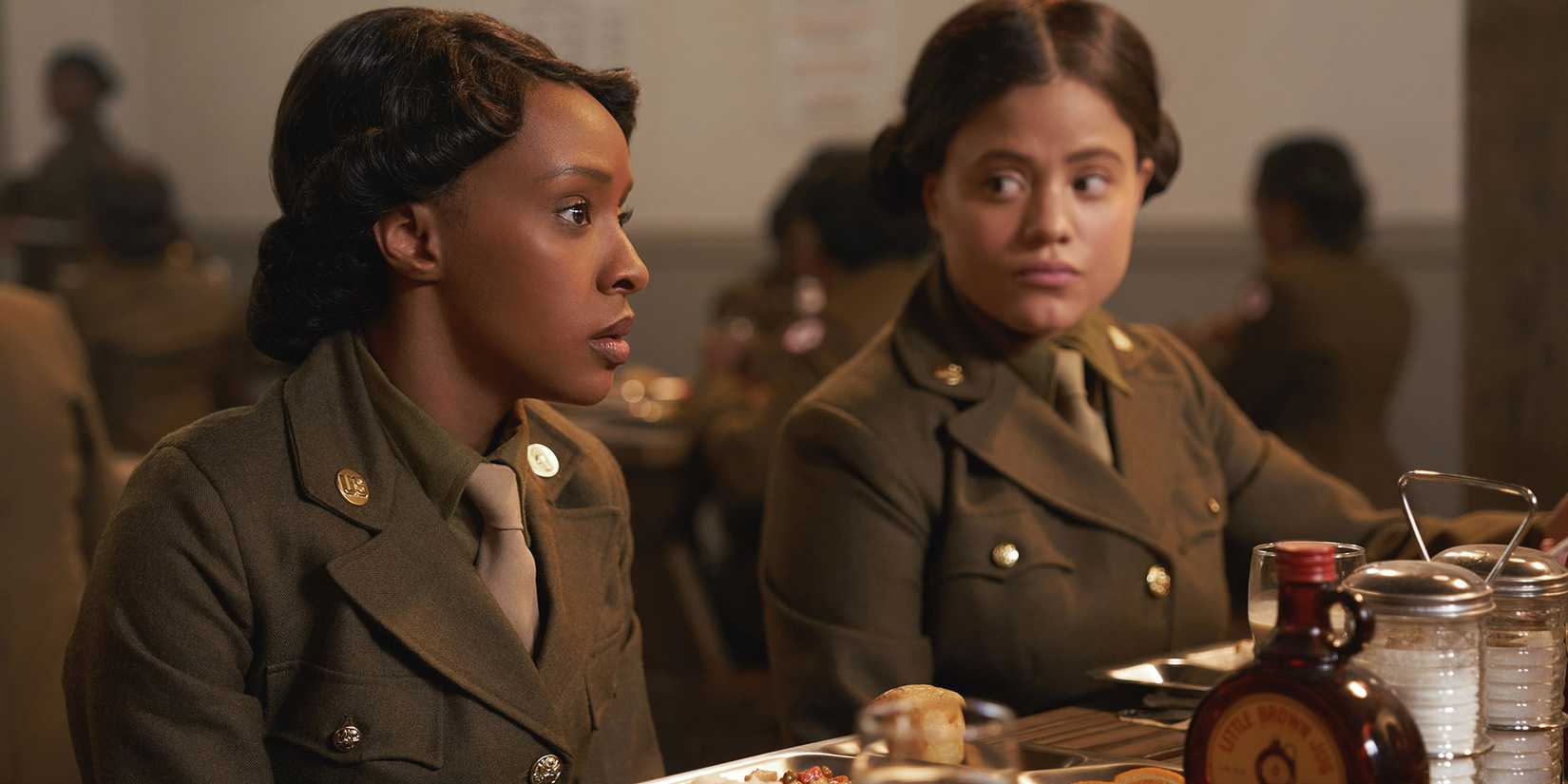 Kerry Washington lideraLos seis triple ocho como la Mayor Charity Adams, quien era jefa de la unidad en la vida real. Su renuencia a verse relegada a lo que parece ser un trabajo ajetreado (revisar más de 17 millones de correos militares atrasados en menos de seis meses) se convierte en una verdadera pasión por completar la misión y garantizar que su equipo reciba el mismo trato. Otro destacado en la película es Ebony Obsidian (que también aparece en la serie BET de Perry). Sistas), que interpreta a Lena Derriecott King, una recluta que se une a la unidad tras la muerte de su amado, Abram David (Gregg Sulkin).