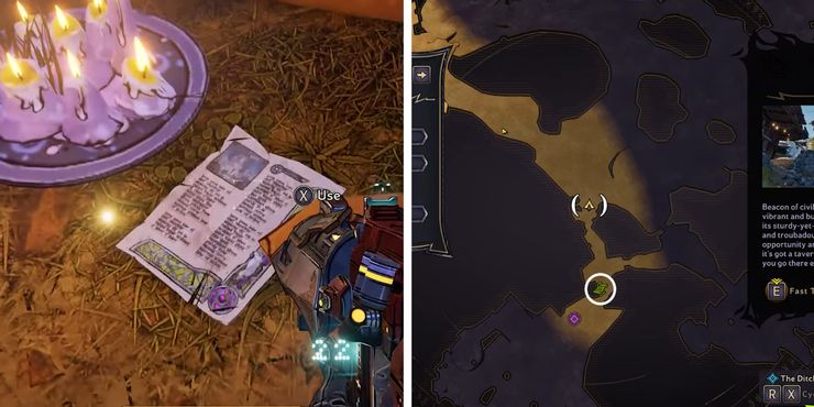 A continuación, después de llegar al punto de viaje rápido en El país de las maravillas de Tiny Tina de Sunfang Oasis, ve directamente a la caverna cercana para encontrar la siguiente página de poesía junto a un plato de velas.
