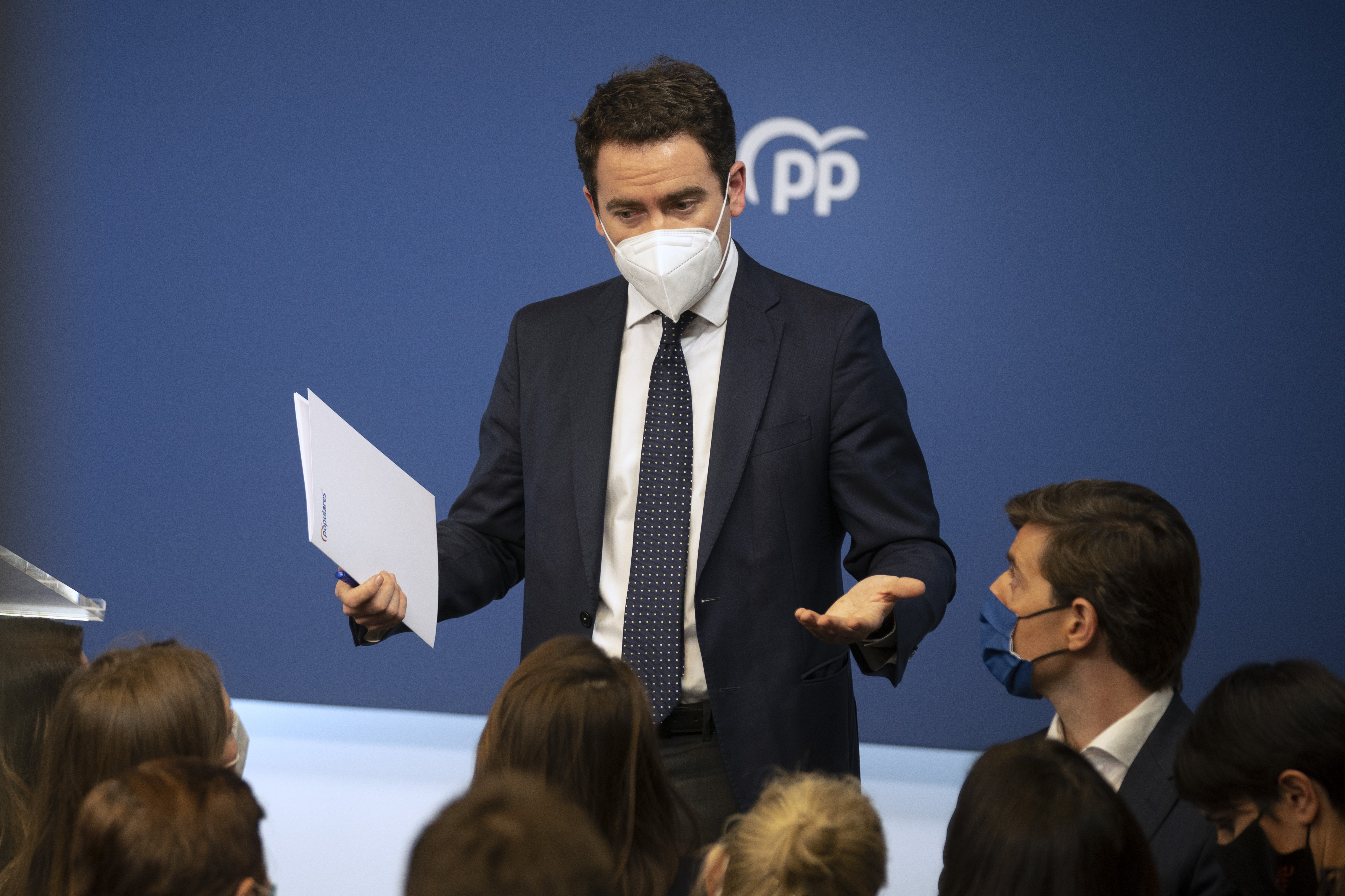 Teodoro García Egea, el jueves durante la rueda de prensa en la sede del PP de la calle Génova en Madrid.Andrea Comas