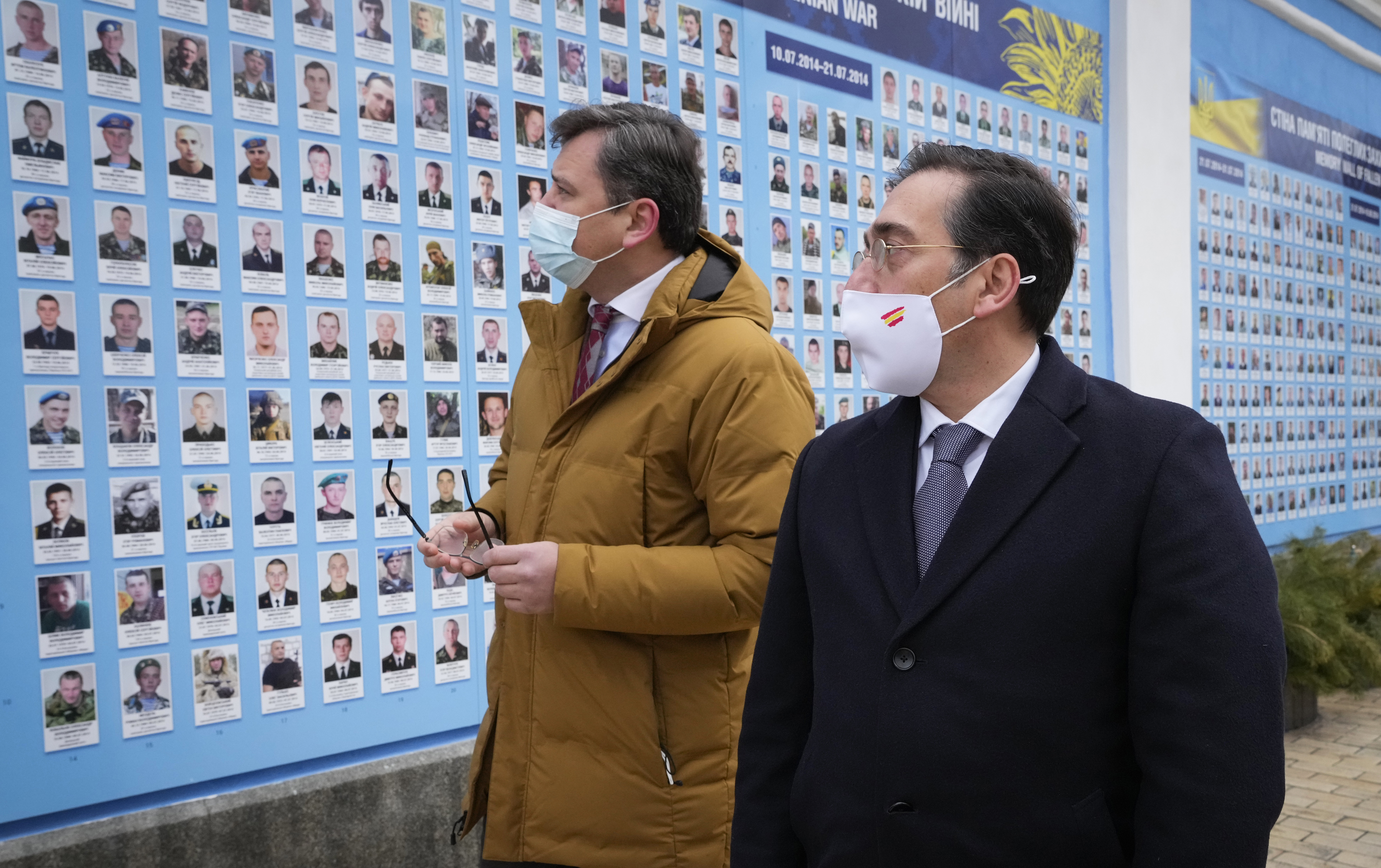 Con el escenario de fondo de nuevas concentraciones de tropas rusas a lo largo de las fronteras con Ucrania, barcos en el Mar Negro y el pistoletazo de salida, este jueves, a la segunda fase de maniobras conjuntas de fuerzas de Moscú y Minsk en Bielorrusia, el ministro de Exteriores español ha insistido en la senda diplomática para una desescalada que, en su opinión, todavía es posible. “Todos los esfuerzos deben ir a encauzar la distensión a través de la vía del diálogo para que Ucrania pueda vivir en paz con respecto a sus fronteras y garantizando su soberanía”, ha declarado Albares, que ha insistido en que su viaje a Kiev —donde también se ha reunido con el presidente, Volodímir Zelenski, y con el primer ministro, Denys Shmyhal— forma parte de esa actividad diplomática “de alta intensidad” de cara a disuadir a Rusia.
