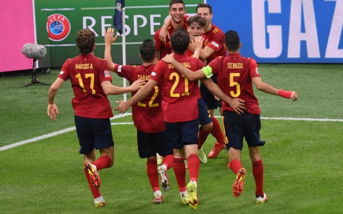 Un falso ‘9’ que hizo su función a las mil maravillas y se convirtió en el arquitecto de los dos goles de España en la primera mitad. El que abrió la cuenta fue una obra de arte que culminó, de primeras, el jugador del Manchester City. Ferran Torres, que sigue con su idilio con el gol cuando viste la camiseta nacional y no falló con un remate casi acrobático.
