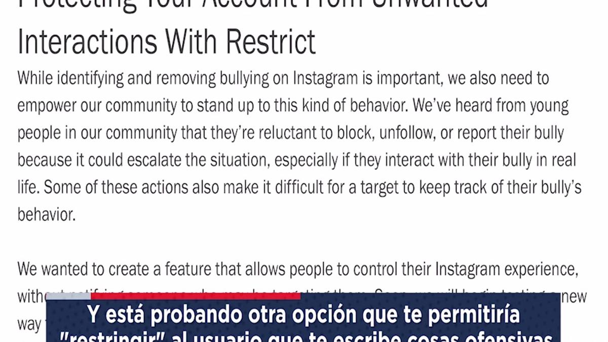 Según explica “una vez que restrinjes a alguien, los comentarios sobre tus publicaciones de esa persona solo serán visibles para ella. Puedes optar por hacer que los comentarios de una persona restringida sean visibles para los demás mediante la aprobación de sus comentarios. Las personas restringidas no podrán ver cuándo estás activo en Instagram o cuando has leído sus mensajes directos”.