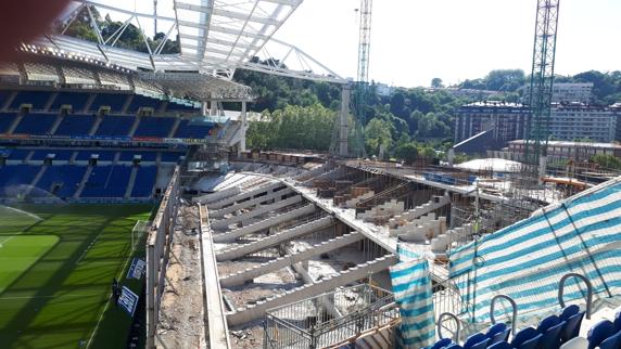 Desde la semana que viene, afrontarán los trabajos proyectados en la tribuna principal. Son los mismos que se desarrollaron el año pasado en la tribuna este. La Real especifica que en los próximos días se procederá a la demolición de las escaleras de acceso exteriores del anillo superior y del zócalo de acceso del anillo inferior. Posteriormente, se construirá el nuevo zócalo y los accesos interiores de esta tribuna. Por último, se colocarán los cierres y los envolventes laterales de EFTE.