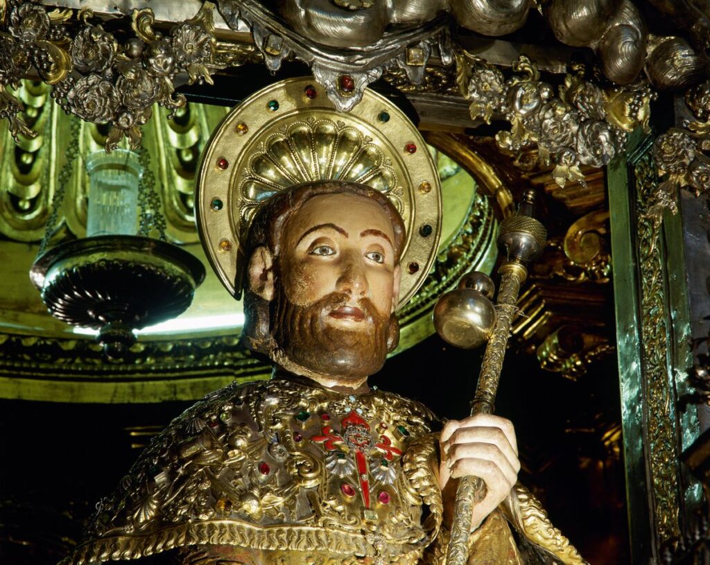 Seis años después, Burdino logró llevarse a Braga, desde Jerusalén, la que, según él, era la verdadera cabeza de Santiago el Mayor, y así sembró la duda sobre la autenticidad de los restos del apóstol en los que se había fundado la catedral gallega. Tanto la sembró, que en 1116 la reina doña Urraca volvió a cometer otro robo: se apoderó de la cabeza que había en Portugal y se la regaló a Xelmírez, que la depositó en un arca de oro, convencido de que podía ser la que Burdino afirmaba que era. Pasaron los siglos y acabó venerándose como el Alfeo, pero nunca dejó de ser la reliquia más mimada del llamado Tesoro de la catedral.