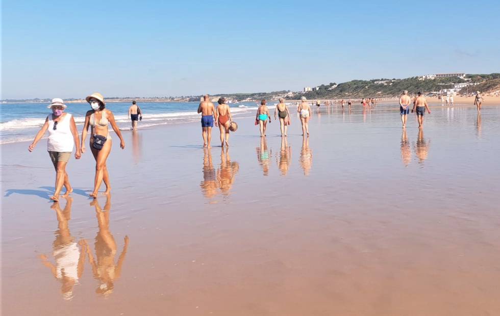 Tant els habitants d’El Puerto com els turistes estan conscienciats. Diumenge, dia de platja per excel·lència, la marea alta deixava apinyats (mantenint certes distàncies) els centenars de banyistes, però amb la baixamar la platja es torna amplíssima: tot just queda puntuada per para-sols i tovalloles i la vora del mar, per on és un plaer caminar fent xip-xap amb els peus sobre la sorra mullada, es converteix en un no parar de passejants, tots amb mascareta. D’alguna manera, i salvant totes les distàncies, més que al coronavirus se li té por a l’enemic de cada estiu: el vent de llevant –de l’interior, calent i violentíssim.