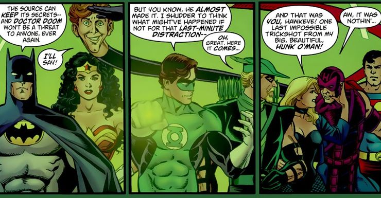 JLA/Vengadores #3, por Kurt Busiek y George Perez, termina el debate de los fanáticos como un golpe de gracia de una flecha de guante de boxeo, ya que Black Canary, el amor de toda la vida de Oliver Queen, prefiere el Arquero Vengador sobre el esmeralda. Green Arrow y Black Canary son una de las parejas más icónicas en cualquier continuidad de DC, pero este cómic confirma que en una realidad donde Clint Barton está en la imagen, el poderoso héroe de Dinah Lance lo preferiría a su amante habitual de DC. Para los fanáticos que debaten si Green Arrow o Hawkeye es el héroe arquero superior, este es un golpe al cuerpo para Oliver Queen.