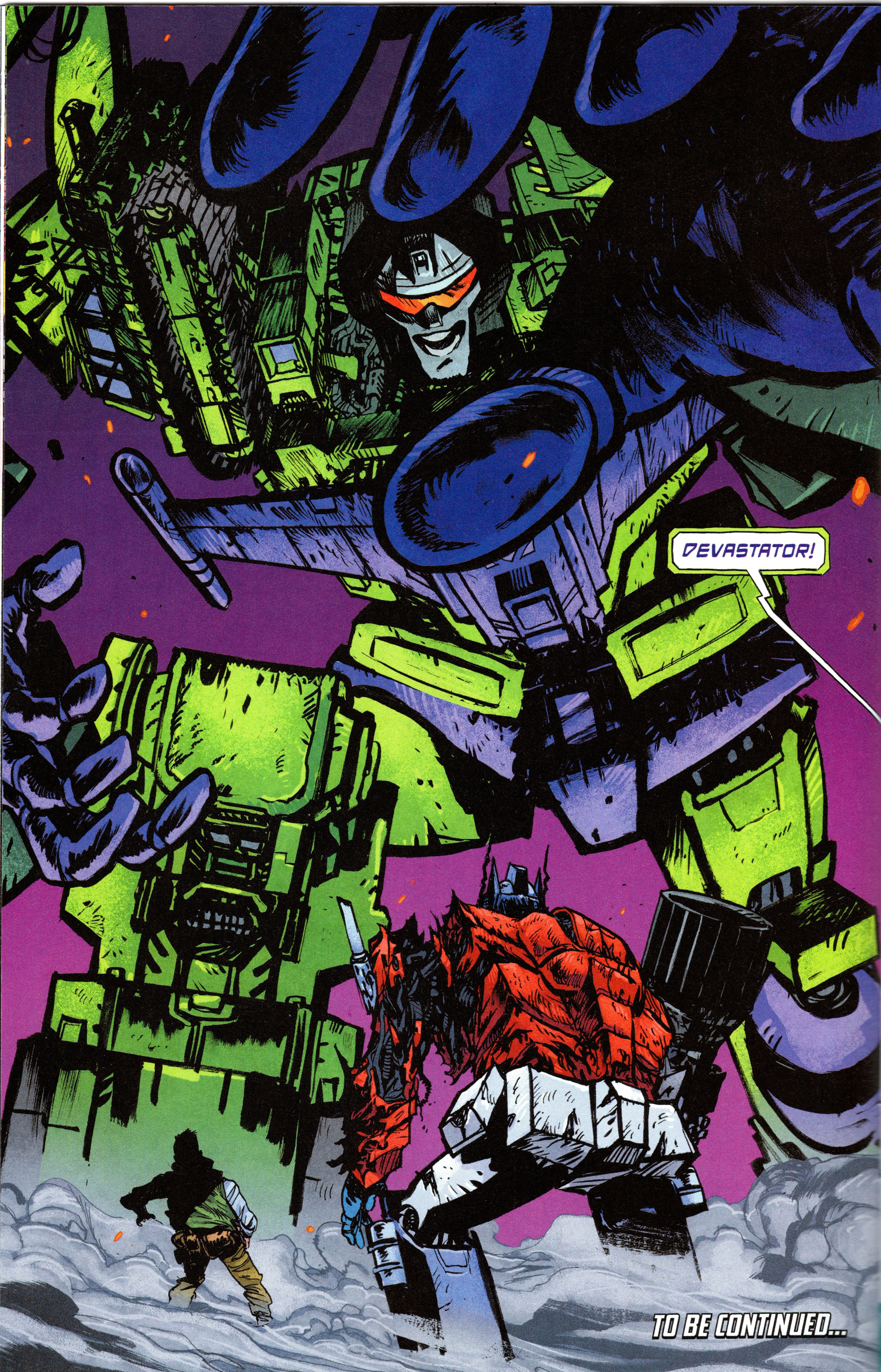 Devastator hace su debut en Transformadores #5 – de Daniel Warren Johnson, Mike Spicer y Rus Wooten – que presenta a los Autobots encontrando una nueva fuente de energía en la presa de la ciudad, cortesía de la experiencia en ingeniería de Sparkplug Witwicky. Desafortunadamente, los Decepticons los frustran rápidamente.
