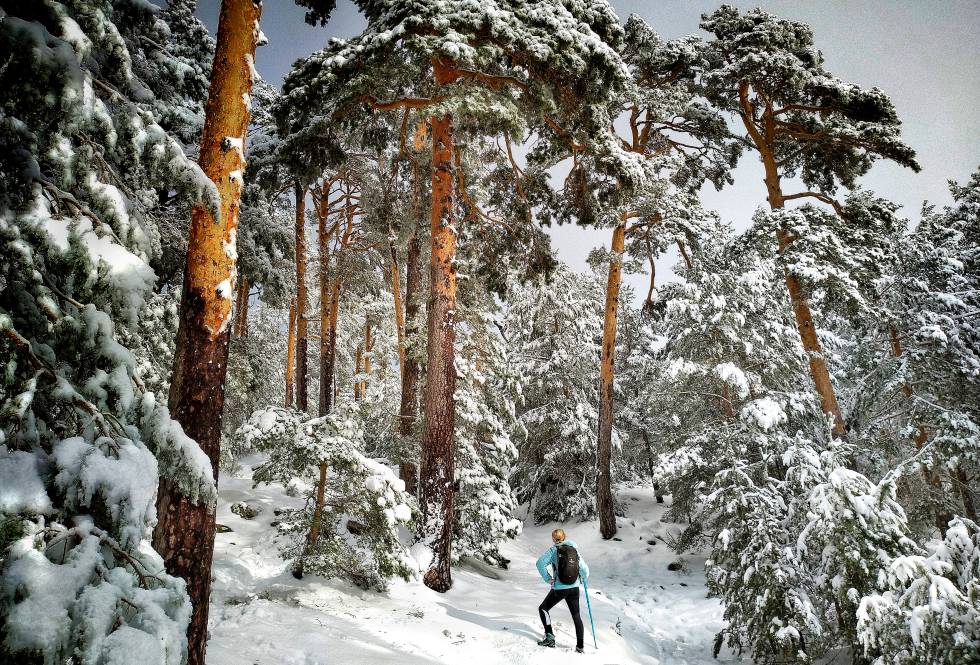 Hay que pasear por el valle de la Fuenfría. En el kilómetro 2 de la carretera de Las Dehesas (M-966) hay un centro de visitantes (918 52 22 13) (2) donde dan las indicaciones para descubrir la calzada romana de la Fuenfría, la cascada de la Ducha de los Alemanes y la senda de los Poetas, la cual recuerda, entre otros, a Luis Rosales, que en Cercedilla echó raíces, lágrimas y amigos del alma: “Las noches de Cercedilla / las llevo en mi soledad / y son la última linde / que yo quisiera mirar”. Un kilómetro más adelante están las tirolinas y puentes tibetanos del parque Aventura Amazonia (3). Cerca arranca la Carretera de la República, una pista forestal de nueve kilómetros con poca pendiente perfecta para subir en bici al puerto de la Fuenfría. Pero nada como andar con raquetas de nieve (en febrero nieva seguro) por el Camino Schmid, que va del valle de la Fuenfría al puerto de Navacerrada bordeando la umbría de Siete Picos.