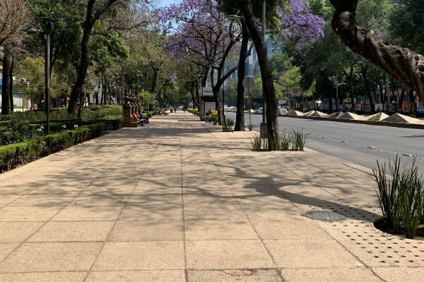 Sobre Paseo de la Reforma, donde este domingo se realizó la mega marcha feminista en la que participaron más de 1oo mil mujeres, este lunes lucían vacías.