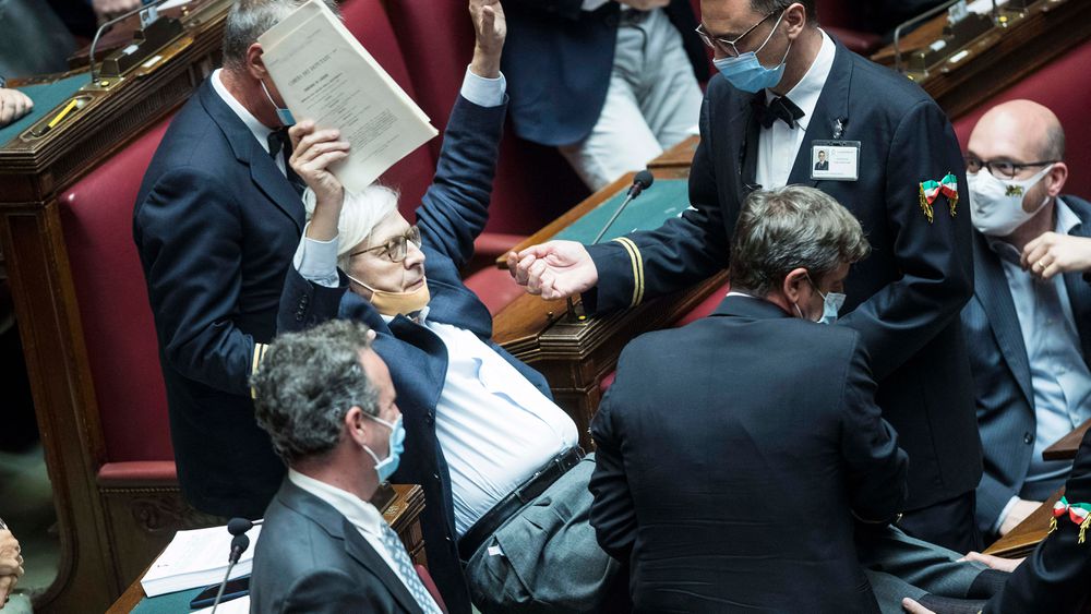 Un diputado italiano es sacado en volandas por insultar a sus colegas durante un debate