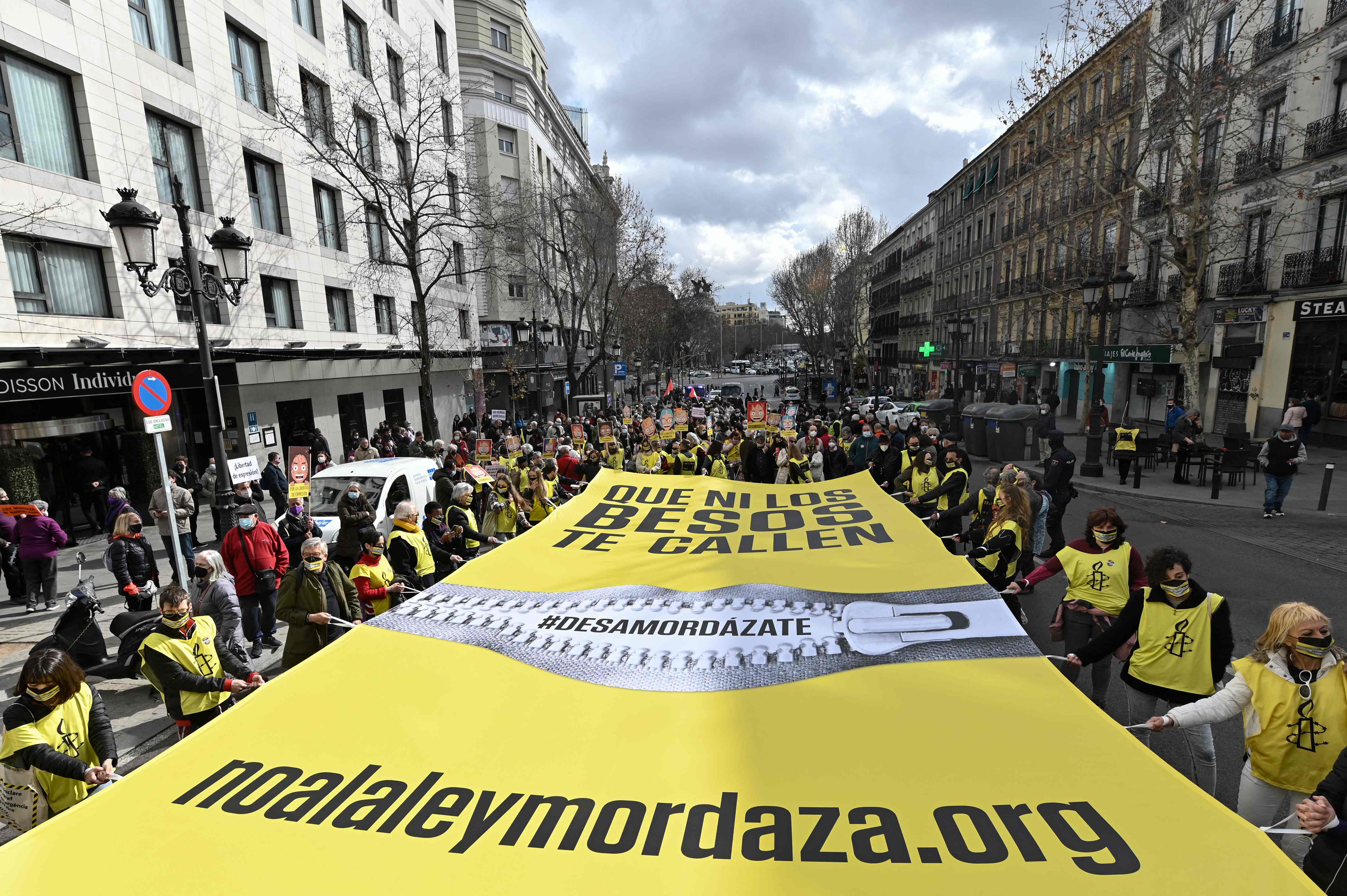 Una protesta contra la ‘ley mordaza’ celebrada el 13 de febrero en Madrid, convocada por Amnistìa Internacional.OSCAR DEL POZO (AFP)