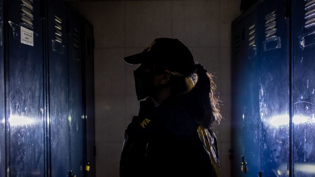 Más de una década poniéndose el chaleco antibalas y no se acostumbra. La gorra, el tapabocas y la última pieza, su glock, el arma que enfunda en el cinturón. Yamila, de la División de Trata de Personas de la Policía Federal, conversa en las taquillas con Rocío, su compañera. Ninguna de las dos acepta publicar sus apellidos, por razones de seguridad. Temas comunes, cotidianos, aunque ambas saben que se avecina otra “jornada de furia”. Solo queda cargar las pinzas y la brecha, un ariete de hierro; lo usan por si se niegan a abrir.
