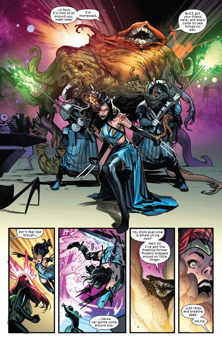 Wolverine y Jean Grey son dos de los X-Men más poderosos y letales. Como Jean señala en este número para asustar a los jugadores alienígenas, ella es una antigua anfitriona de Phoenix, y ni siquiera la entidad cósmica pudo doblegar su voluntad. Laura Kinney también tiene antecedentes con el control mental, pero su experiencia fue inútil y cayó bajo el control de Cordyceps. Esto significa que el jefe del crimen mejoró en el uso de sus poderes: cuando Rocket y Wade robaron a Jones en el pasado, el Mercenario bocazas pudo resistir la posesión debido al factor de curación de Deadpool, que invierte el de Wolverine. El hecho de que Laura no haya podido resistirse significa que el equipo de X-Women está en un gran problema, especialmente si Cordyceps puede controlar a Jean, una exanfitriona de Phoenix.