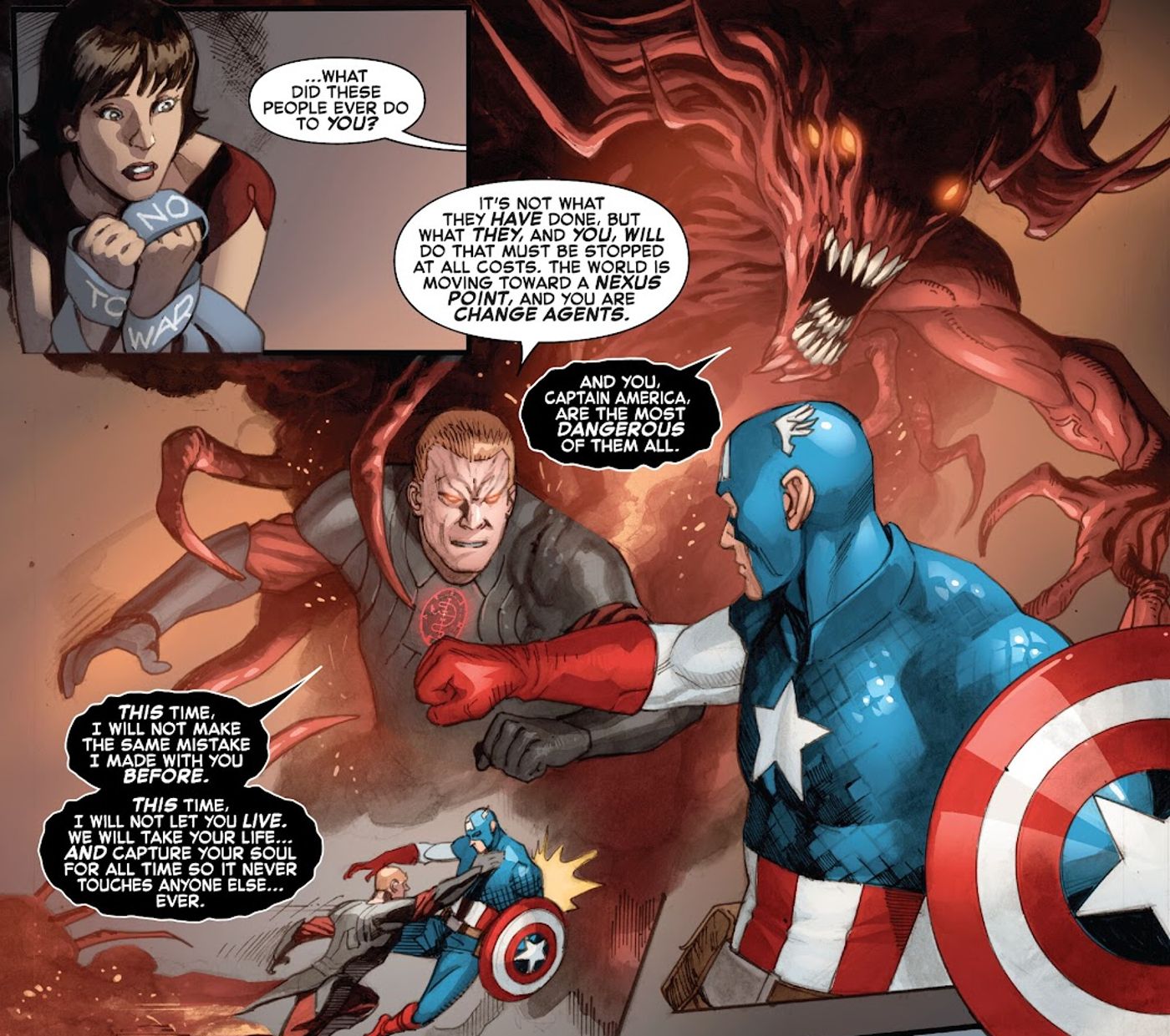 Steve Rogers no es una fuerza para el bien porque se convirtió en el Capitán América. Se convirtió en Capitán América porque ya fue elegido para marcar la diferencia. Añade una sensación de destino y dirección cósmica a su vida, para bien o para mal. Siempre estuvo destinado a salvar el mundo, aparentemente más de una vez, e incluso su propia muerte inminente no lo frenó. En cambio, el universo le abrió un camino completamente nuevo para continuar y lo equipó con habilidades extraordinarias, y Asmoday todavía está tratando de deshacer la decisión de dejarlo vivir.