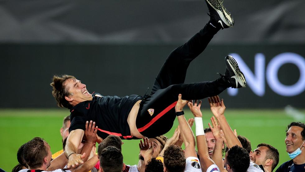 Una imagen vale más que mil palabras. La de la plantilla del Sevilla manteando a Julen Lopetegui minutos después de finalizar el partido refleja lo que ha conseguido el técnico vasco en apenas un año. Parece mentira, pero tan solo ese tiempo ha transcurrido desde que Monchi confió en un entrenador que, tras salir rebotado tanto de la Selección como del Real Madrid, bien podría haber perdido la confianza en sí mismo. Nada más lejos de la realidad. Lopetegui aceptó de buen grado el reto de reconstruir a un Sevilla que, por segundo curso consecutivo se había quedado fuera de la Champions League tras haberse malacostumbrado a disputar la misma. Sobre el papel desde luego que no se antojaba sencillo.