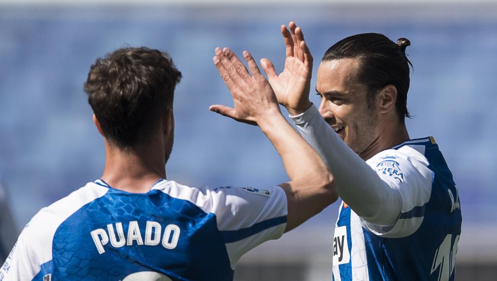 Tomás y Puado. El canterano puso un gran balón que el ‘killer’ perico cabeceó en boca de gol, logrando un doblete que le sitúa, con 22 dianas, como máximo realizador de Segunda División por delante del sportinguista Uros