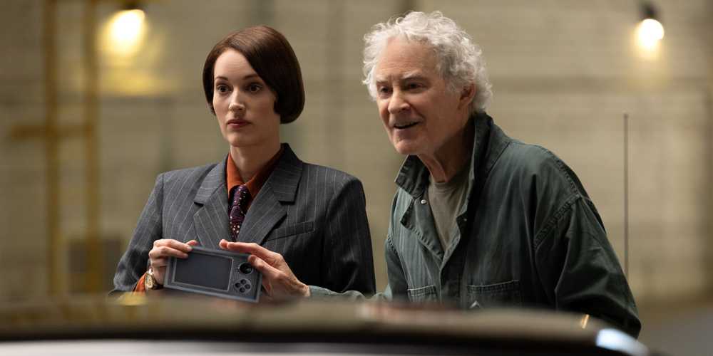 Inicialmente, Un gran viaje audaz y audaz Comienza como una película ambientada en un mundo normal y cotidiano. Sin embargo, no pasa mucho tiempo antes de que el peculiar se intensifique, con David encontrando su camino a la agencia de alquiler de automóviles, dirigido por dos empleados interpretados por Phoebe Waller-Bridge y Kevin Kline. Todo sobre la configuración es extrañodesde los acentos alemanes de los empleados que van y vienen al almacén vacío en el que se encuentran.