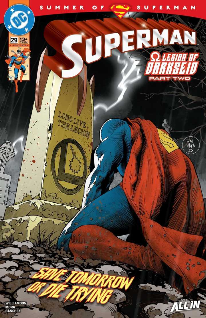 Superhombre #29 de Joshua Williamson y Dan Mora retoman donde quedó el último número, con Superman asociándose con Superboy-Prime para salvar el futuro al rescatar el oro de refuerzo en el siglo 31.