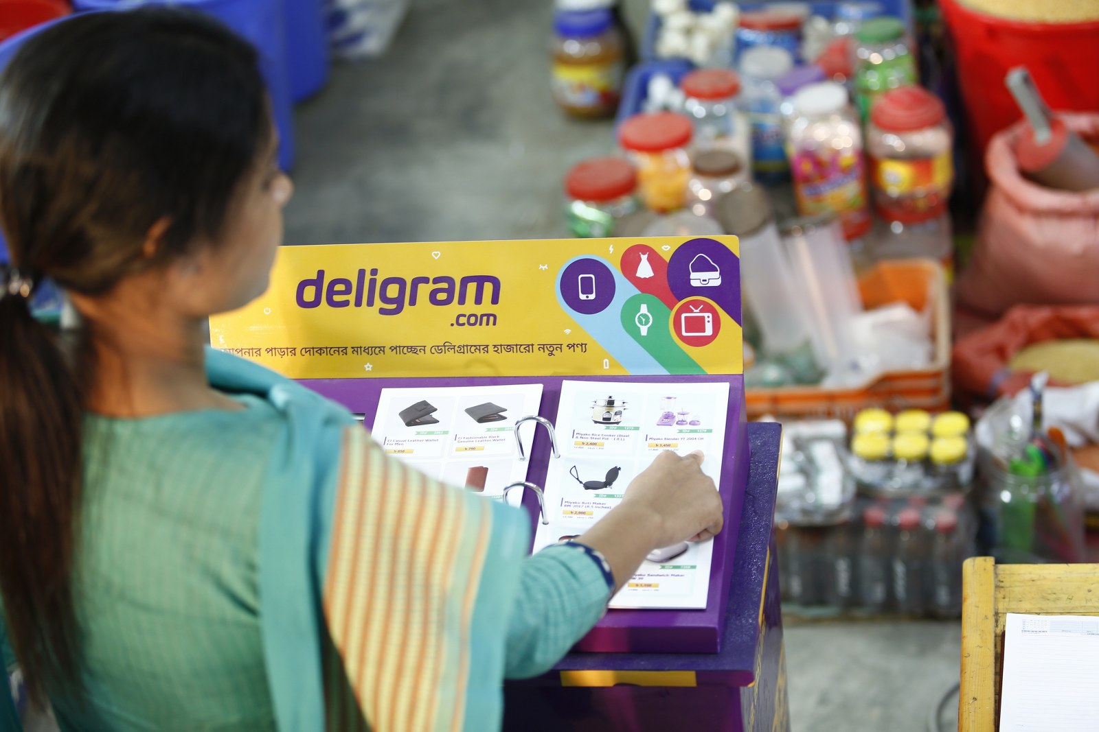 En lugar de interrupción, trabajar con lo que forma parte del tejido social es más lógico. Por lo tanto, Deligram ha adoptado un enfoque híbrido que combina su sitio web de comercio electrónico regular y su aplicación con tiendas minoristas fuera de línea a través de tiendas familiares, conocidas como “mudir dokan” en el idioma bengalí de Bangladesh.