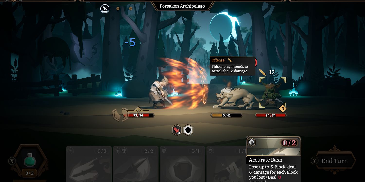 La navegación también tiene problemas, específicamente con la selección de tramas y la interacción automática con mosaicos especiales. Estos mosaicos incluyen encuentros de combate, santuarios y entradas a la siguiente etapa. El problema surge cuando los jugadores quieren pasar de un encuentro a un vendedor, por ejemplo, pero la entrada al siguiente portal está en el área de viaje. Si el jugador no elige una línea específica para evitarla y, en cambio, hace clic en el vendedor, es probable que el juego lo lleve directamente a través de la entrada, lo que tiene prioridad y, sin querer, fuerza al jugador a pasar a la siguiente área. Si bien eso es lo suficientemente molesto, horizonte marino no permite que el jugador regrese al área anterior. Entonces, si el hambre es baja y el único vendedor de comida estaba en el área anterior, el jugador no tiene suerte y se ve obligado a continuar o reiniciar.
