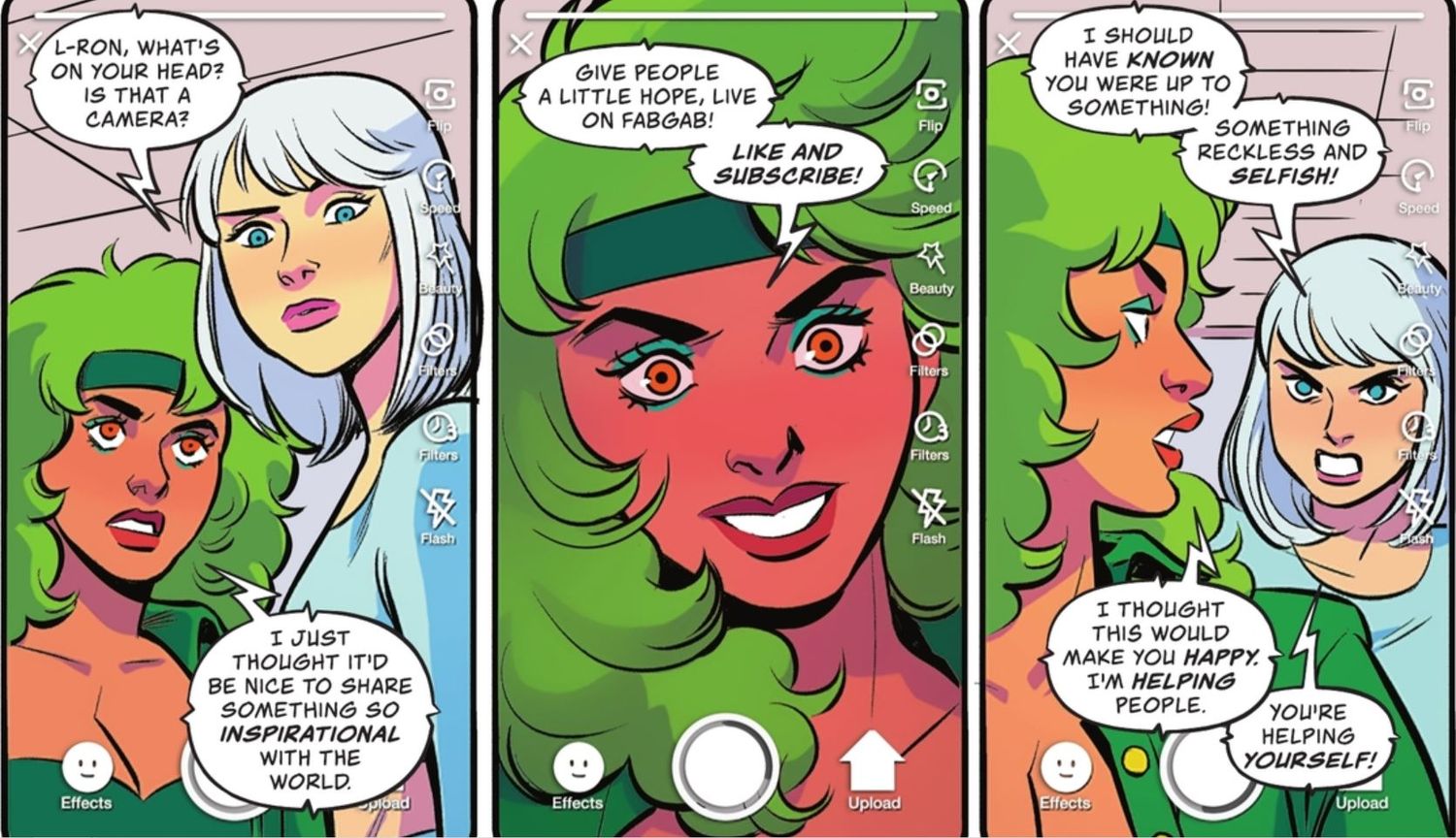 • Fire usa las redes sociales para revitalizar su carrera de superhéroe, pero sus videos de golpear a Ambush Bug no tienen éxito.