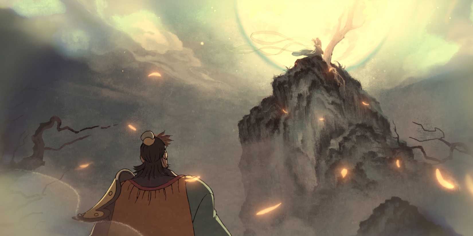 La escena animada del capítulo cuatro cuenta una parte de la historia de Zhu Bajie.que cuenta una historia de amor que comienza antes de que él se convirtiera en una criatura parecida a un cerdo. El foco está en él enamorándose de una mujer maldita por ser una araña, pero también parece mostrar su fascinación por Chang’e, la diosa de la luna a la que le propuso matrimonio en los eventos anteriores al original. Viaje al oesteEl intento de Bajie de seducir a Chang’e es lo que impulsó al Emperador de Jade a finalmente exiliarlo del cielo, lo que llevó a su extraña forma de reencarnación.