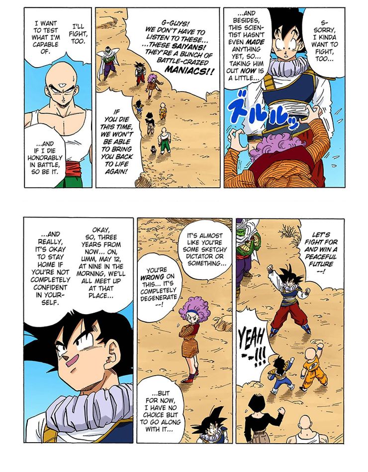 Trunks revela que, dentro de tres años, estas poderosas criaturas despertarán y acabarán con la humanidad, matando a todos los protectores de la Tierra, incluido Goku. En el capítulo 336, cuando Bulma se entera de esto, sugiere eliminar al Dr. Gero de inmediato, antes de que tenga tiempo de completar sus creaciones. Todos los luchadores reunidos reaccionan con vehemencia contra la propuesta de Bulma, diciendo que en realidad quieren luchar contra estos nuevos y poderosos oponentes. La reacción de Bulma es cómica: trata de convencer a los humanos del grupo diciendo que los Saiyajin son “maníacos enloquecidos por la batalla,” y luego comenta sobre el discurso de reunión de Goku comparándolo con un “dictador incompleto con sus seguidores.Sin embargo, las palabras de Bulma en realidad revelan cuán peligroso es Goku.