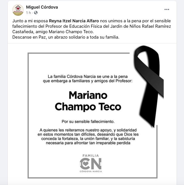 Mariano Champo, fallecido en el accidente, era profesor de educación física del Jardín de Niñas y Niños de la Escuela Rafael Ramírez Castañeda.