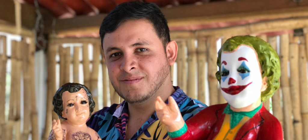 “Básicamente consiste en la intervención de una pieza de un Niño Dios, que está hecha de pasta de cerámica o yeso.La idea ya la tenía porque veía muchas personas disfrazando a sus muñequitos de diferentes personalidades como mariachi, doctor, futbolista, incluso llegué a ver como de culturas prehispánicas y algunos otros caracteres. Yo decía ‘ok, me gustaría hacer algo ya con mi mano, algo distinto y algo que yo pueda transmitir, sí un tanto satírico, pero que tenga la esencia de la mayoría de los jóvenes en México”, explicó.