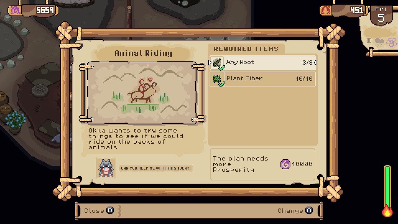 - Los jugadores contribuyen a la prosperidad de la tribu ganando puntos de contribución y ayudando a los residentes con misiones que promueven la tecnología, mientras participan en actividades como agricultura, pesca y exploración.
