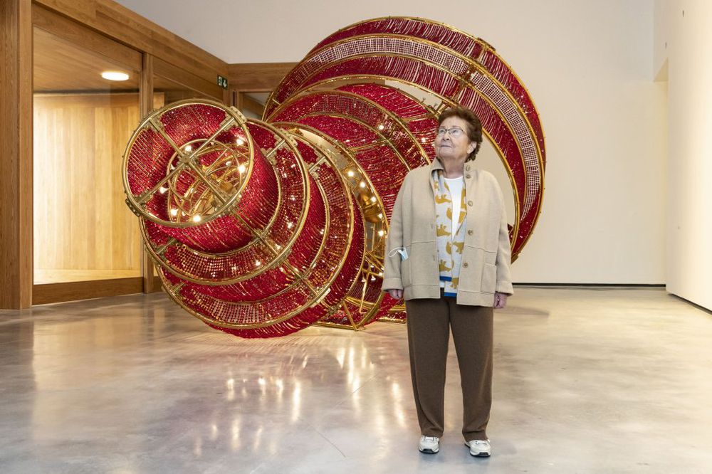 Su tamaño condiciona las dimensiones del resto del museo, donde la gran obra es la protagonista, como en el caso de Herramientas de poder (2007), de Thomas Hirschhorn, compuesta de mil piezas, entre tornillos, hachas y martillos, y expuesta en una sala de 10 metros de altura. La galerista se sintió especialmente conmovida al verla y tuvo que hacerse con ella, ya que le recordaba a la destrucción que vivió durante la II Guerra Mundial en su país natal, como explica en el vídeo que acompaña a esta noticia. O la de Echo Activity (2017), de Olafur Elliason: “Es un superartista y tengo una obra de su primera época”, señala orgullosa.