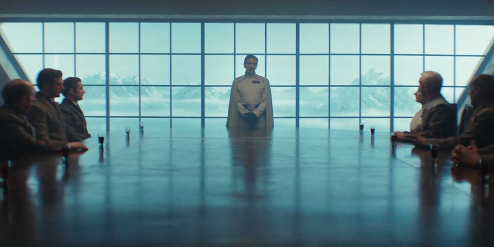 La escena comienza con una foto establecida del lugar de reunión imperial en las montañas de un lugar llamado Malthenewe Divide. Se puede escuchar la voz de Krennic mientras la cámara empuja en este edificio antes de que se lo muestre inmediatamente en un disparo amplio dentro de la reunión. La escena se desarrolla desde allí, con Krennic explicando la situación en Ghorman, describiendo cómo el emperador necesita extraer kalkite desde su núcleo y alista a los que se encuentran en la reunión para descubrir cómo el imperio puede conquistar el planeta. En general, esta introducción a un personaje tan grande es increíblemente discreta.