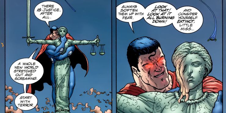 Los lectores no tienen que mirar muy lejos para ver ejemplos dentro de la continuidad de CC. Batman se rompió la espalda y fue reemplazado en el arco de la historia de 1993 Caida de caballeros, solo para sanar y volver al papel poco después. Superman fue literalmente asesinado y enterrado en La muerte de superman en 1993, solo para resucitar casi de inmediato. Y más recientemente, The Flash, Wally West, asesinó a una multitud de héroes en la serie limitada de 2019. Héroes en crisis solo para ser redimido, otorgado poderes divinos y regresado a la Tierra como el nuevo Flash. Cualquiera que sea el resultado oscuro que pueda surgir en las páginas de DC Comics, siempre concluirá con los héroes saliendo victoriosos de cualquier amenaza, sin importar los errores que hayan cometido ni cuán existencialmente enorme haya sido el problema. No puede haber consecuencias por sus acciones, ya que siempre serán redimidos por el poder del bien, así como los villanos serán invariablemente castigados por el poder del mal.