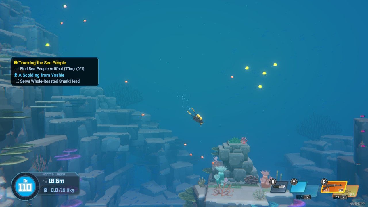 De lo contrario, todo se transfiere sin problemas. Dave el buceador en Switch responde y la interfaz de usuario se ha ajustado de manera impresionante a la resolución de pantalla más pequeña sin sacrificar la legibilidad o la limpieza. Los controles tienen sentido, el juego no se ve afectado por el ajuste más allá de breves y ocasionales caídas de cuadros por segundo, y el contenido sigue siendo tan atractivo como antes.
