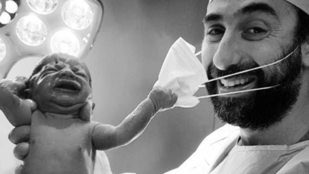 La imagen ya ha dado la vuelta al mundo, y es de lo más peculiar. El obstetra Samer Cheaib posa con el bebé en el paritorio, y aparece el recién nacido quitándole la mascarilla al médico.