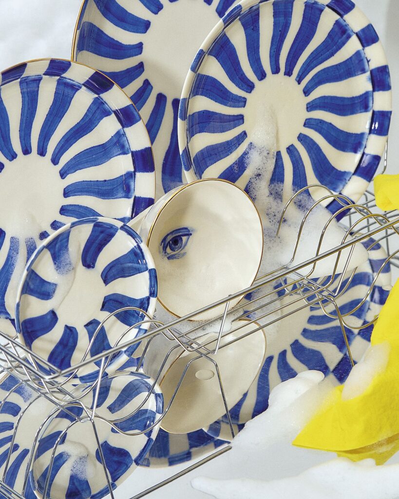“Lo que más nos apetecía era seguir trabajando con azulejos, pero como con la pandemia ese tipo de encargos nos dejaron de llegar, se nos ocurrió sacar una colección de piezas de porcelana pintadas a mano”, explica Jack Wooley. La idea ahora, añade Ignasi, es llevar la cerámica española a mundos como el de la moda, algo que harán muy pronto para la firma neoyorquina Zankov, o el de los muebles. Parece que lo mejor está por llegar, porque el artista le tiene echado el ojo a esa curiosa tradición de la cerámica española conocida como alfarería de engaño. “Tengo ganas de hacer algo con la idea del botijo trampa. Me divierte muchísimo”.
