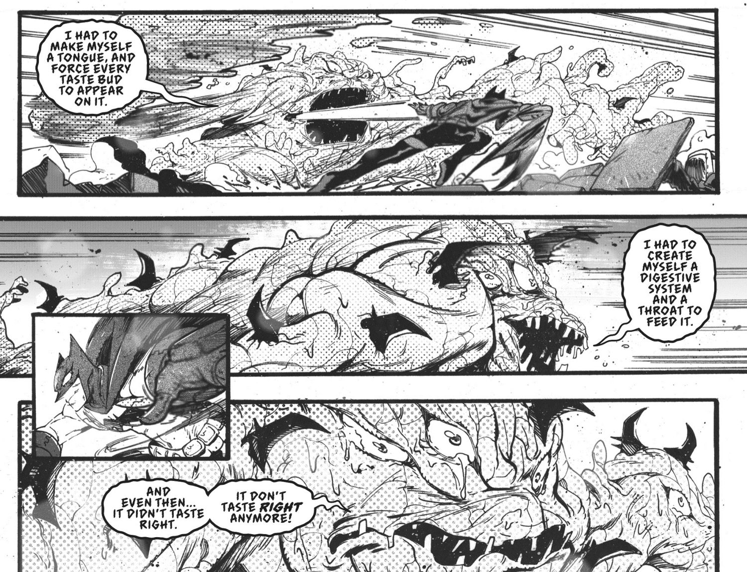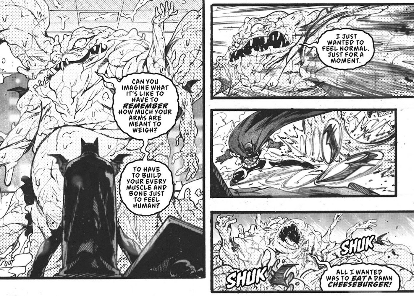El cuento “Batman: La hamburguesa con queso” de Dan Watters, Ricardo López Ortiz y Troy Peteri de Batman: el valiente y el audaz #10 detalla que Clayface pierde la compostura en un restaurante de comida rápida después de crear minuciosamente papilas gustativas y un sistema digestivo para su cuerpo que de otro modo estaría informe, solo para recibir una comida terrible.