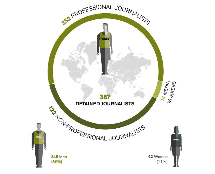 Así lo dio a conocer este lunes la organización, que alertó de que la cifra global de periodistas presos en el mundo se mantiene en máximos históricos.