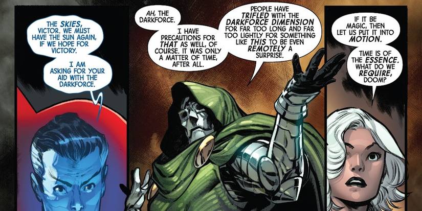 #4, Doctor Doom se niega a ayudar a salvar el mundo, enfatizando que a pesar de su papel más antiheroico en el Universo Marvel durante la última década, sigue siendo un villano, centrado principalmente en el interés propio y la autoconservación.