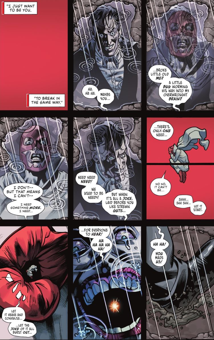 Historias como la de Batman (2016) #143 y Batman: Tres comodines (2020) enfatizan que, en lugar de un origen distinto, el Joker tiene tres aspectos: el Payaso, el Criminal/Demonio y el Comediante/Muerte. Cuando se toma junto con los acontecimientos de Batman (2016) #135, en el que la manipulación de Máscara Roja genera Jokers en todo el Multiverso DC, esto resalta el hecho de que el Joker es más parecido a una fuerza de la naturaleza, o una entidad que ha trascendido la realidad. A pesar de ser un caos aparentemente generado espontáneamente, Joker es muy consciente de su propio papel en el Universo DC.