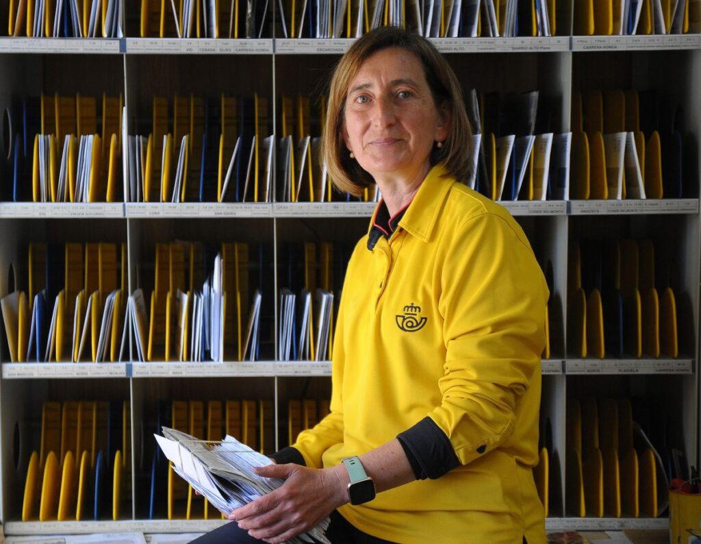 Sentada en una oficina pequeña, pero sumamente ordenada, María del Carmen Ávila revisa y ordena con agudeza las 355 cartas y paquetes que tiene que repartir ese día por Belmonte de Tajo, el pueblo madrileño donde trabaja como cartera rural. Son las 10.06 horas de la mañana y aún le falta una media hora para cargar su carrito y recorrer las calles. A la par que teclea su PDA para registrar las cartas que los belmonteños han llevado a Correos con destinos diversos, hace lo mismo, a mano, en un libro con letra clara y menuda. “Hablen canas, callen letras. Me lo enseñó la antigua cartera y lo sigo haciendo por seguridad”, subraya. Habla de Nicolasa Carralero, su suegra y de la que aprendió, además del oficio, la vocación. Ávila, La Cartera para los nuevos vecinos y La hija de El Púa para los oriundos, metió su primer sobre como cartera rural hace tres décadas, cuando tenía 22 años. Ahora, encarna la transformación que en los últimos años estos trabajadores de Correos representan: la digitalización de su oficio y ofrecer más prestaciones básicas a la ciudadanía: desde cobrar las facturas de la luz a realizar trámites con la Administración. “Somos la generación del cambio. Llevamos aún los servicios tradicionales (cartas y paquetería) y los nuevos, como entregar dinero en metálico de las cuentas bancarias de los clientes o distintivos de la DGT, por ejemplo”, explica.